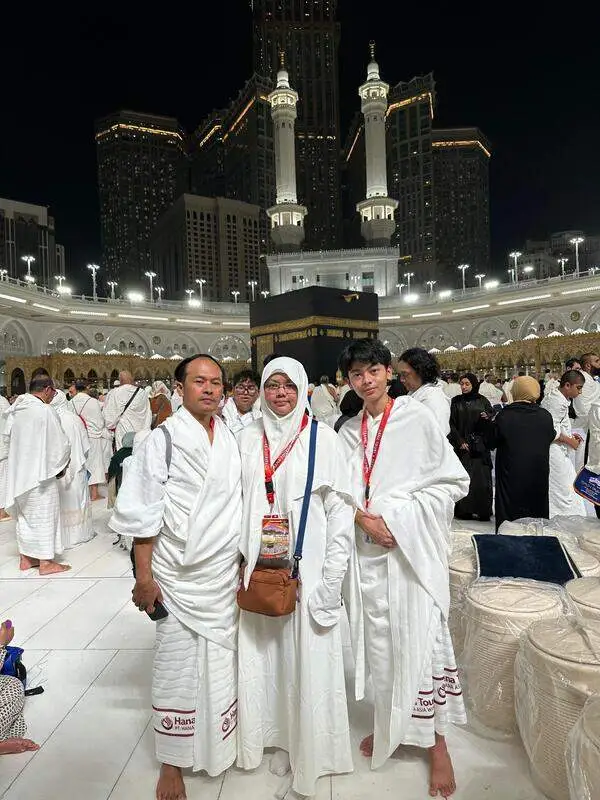 “Terimakasih kepada Hana Tours (PT Hana Asia Wisata), kita bisa umroh bareng, pokoknya kalau kalian mau umroh bareng kita, pilih Hana Asia Wisata.”